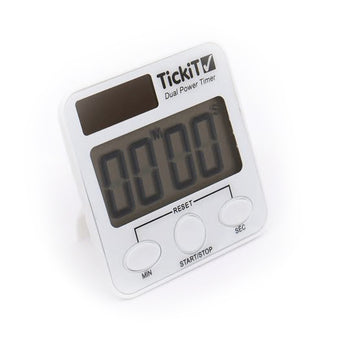 Individual timer can time up or down to 99 minutes and 59 seconds. A beeping alarm is sounded when the time has been reached. Having dual power functionality (solar or battery operated) means they are always charged and ready to go. The push buttons have been designed for ease of use. The timers can be used in numerous experiments, for circle time, games timing of tests and a hundred and one other uses. Includes built-in mounting slot and stand for hands-free use. Display measures 2" x 1". Colors may vary.