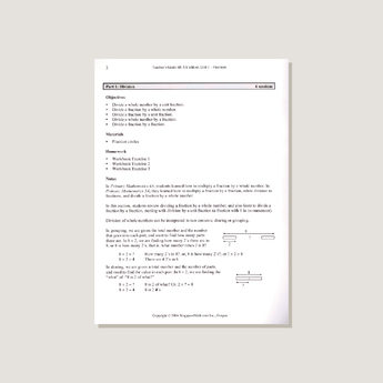 - Background notes on math concepts that place lessons in context of previous and future material.