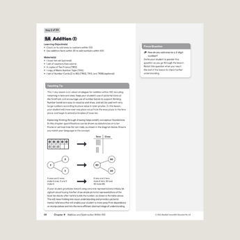 Intended to accompany the Student Book, the Home Instructor’s Guide provides Student Book answers, select worked solutions, teaching ideas, and strategies to facilitate exploration, discussion, and student-centered learning. The front matter provides background on the program structure, lesson and concept development, and an overview of the Readiness-Engagement-Mastery model of learning.