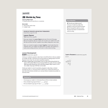 Intended to accompany the Student Book, the Home Instructor’s Guide provides Student Book answers, select worked solutions, teaching ideas, and strategies to facilitate exploration, discussion, and student-centered learning. The front matter provides background on the program structure, lesson and concept development, and an overview of the Readiness-Engagement-Mastery model of learning.