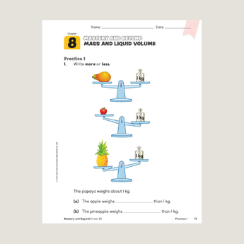 Mastery & Beyond is a distributed practice workbook. It provides practice of essential math concepts at select points to help students make connections. While the Additional Practice is for daily use, Mastery and Beyond is intended to be used at key points in a chapter after multiple lessons.