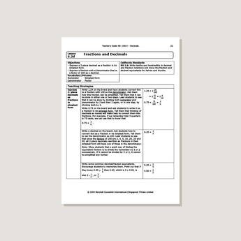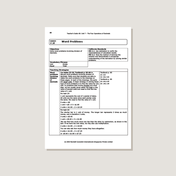Primary Mathematics Standards Edition Teacher's Guides are designed to help teachers understand the course material and prepare for the day's lessons. Rewritten specifically for the Standards Edition, the lessons have been developed according to the approach and methodology central to this series. Detailed, step-by-step lesson plans and introductory content are provided to assist teachers in using the Primary Mathematics Standards Edition program.
