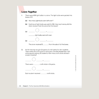 The Student Book is the consumable textbook of the program.Chapters and daily lessons are based on the Readiness-Engagement-Mastery model of learning used in Singapore classrooms. In the Readiness phase, students make connections to previously learned concepts and skills to be sure they have the base knowledge to succeed with learning goals. In the Engagement phase, students learn by doing and construct new knowledge through engaging activities and guided inquiry. In the Mastery phase, students gain fluency, confidence, and deeper conceptual understanding through practice and problem solving.