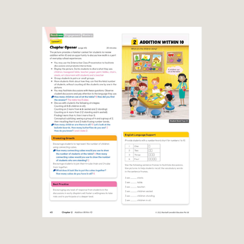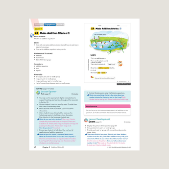 The Teacher’s Guide provides teaching ideas and strategies to facilitate exploration, classroom discussion, and student-centered learning. It also includes ideas for differentiation, ideas for small group learning, and answers with select worked solutions. The front matter provides background on the program structure, lesson and concept development, and an overview of the Readiness-Engagement-Mastery model of learning.