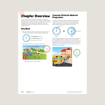 The Teacher’s Guide provides teaching ideas and strategies to facilitate exploration, classroom discussion, and student-centered learning. It also includes ideas for differentiation, ideas for small group learning, and answers with select worked solutions. The front matter provides background on the program structure, lesson and concept development, and an overview of the Readiness-Engagement-Mastery model of learning.