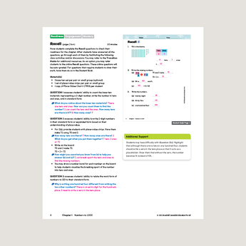 The Teacher’s Guide provides teaching ideas and strategies to facilitate exploration, classroom discussion, and student-centered learning. It also includes ideas for differentiation, ideas for small group learning, and answers with select worked solutions. The front matter provides background on the program structure, lesson and concept development, and an overview of the Readiness-Engagement-Mastery model of learning.