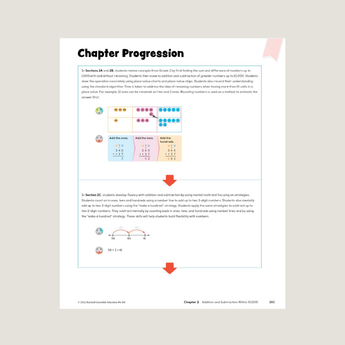 The Teacher’s Guide provides teaching ideas and strategies to facilitate exploration, classroom discussion, and student-centered learning. It also includes ideas for differentiation, ideas for small group learning, and answers with select worked solutions. The front matter provides background on the program structure, lesson and concept development, and an overview of the Readiness-Engagement-Mastery model of learning.