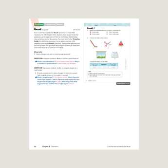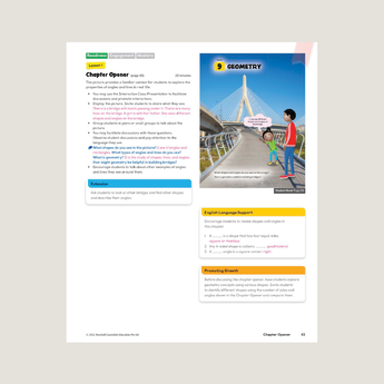 The Teacher’s Guide provides teaching ideas and strategies to facilitate exploration, classroom discussion, and student-centered learning. It also includes ideas for differentiation, ideas for small group learning, and answers with select worked solutions. The front matter provides background on the program structure, lesson and concept development, and an overview of the Readiness-Engagement-Mastery model of learning.