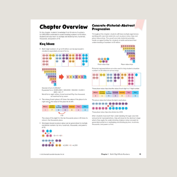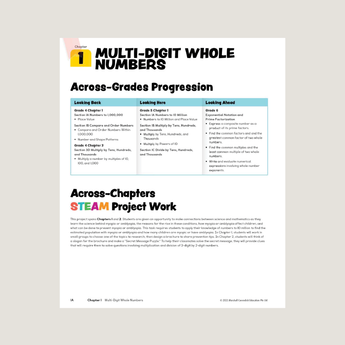 The Teacher’s Guide provides teaching ideas and strategies to facilitate exploration, classroom discussion, and student-centered learning. It also includes ideas for differentiation, ideas for small group learning, and answers with select worked solutions. The front matter provides background on the program structure, lesson and concept development, and an overview of the Readiness-Engagement-Mastery model of learning.