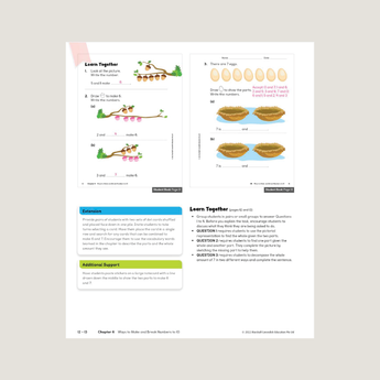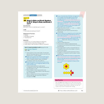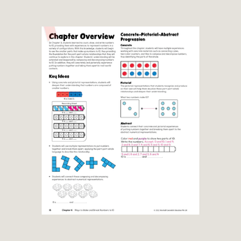 The Teacher’s Guide provides teaching ideas and strategies to facilitate exploration, classroom discussion, and student-centered learning. It also includes ideas for differentiation, ideas for small group learning, and answers with select worked solutions. The front matter provides background on the program structure, lesson and concept development, and an overview of the Readiness-Engagement-Mastery model of learning.