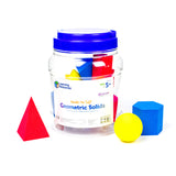 Enhance geometry lessons through colorful, tactile 3-D shapes with quiet Hands-On Soft® Geometric Solids. Foam shapes come in three colors and measure 2"-3". Set of 12 includes cone, sphere, hemisphere, cube, cylinders, pyramid, triangular prism, rectangular prism, convenient storage tub and Teaching Guide. Perfect for individual or small group to use for learning of shapes, sizes and their relationships.
