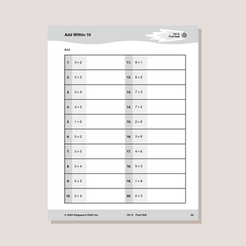 Boost your students’ fluency with Singapore Math Sprints: a proven, engaging method designed to reinforce concepts, strengthen recall, and build crucial mental math skills. Designed to integrate with any curriculum or educational setting (but built on the rigor of Singapore Math and aligned to Dimensions Math), sprints transform math practice into an exciting challenge, encouraging students to surpass their personal bests.