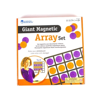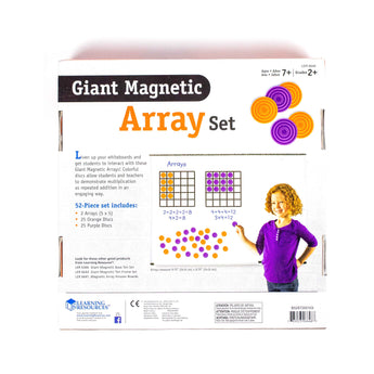 Grab students’ attention with jumbo math tools, on your board and in living color! Set of two magnetic 5 x 5 arrays include 50 purple and orange magnetic counters to demonstrate repeated addition, multiplication, number facts and representations, and much more! Also includes an Activity Guide featuring ideas for cooperative work with the entire class. All eyes up front—class is in session!