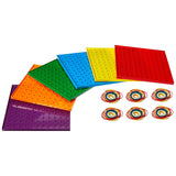 Explore and study geometry, perimeter, and area. 9" double-sided boards in six colors. One side has a 11 x 11 pin grid and the other has an isometric array.