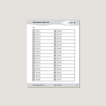 Boost your students’ fluency with Singapore Math Sprints: a proven, engaging method designed to reinforce concepts, strengthen recall, and build crucial mental math skills. Designed to integrate with any curriculum or educational setting (but built on the rigor of Singapore Math and aligned to Dimensions Math), sprints transform math practice into an exciting challenge, encouraging students to surpass their personal bests.