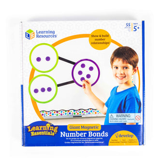Set includes 3 circle and 3 square number bonds (8 inch and 9½ inch in diameter, respectively), 4 connecting lines, and 45 magnetic counters measuring 1¼ inch each.