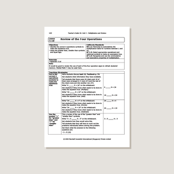 Primary Mathematics Standards Edition Teacher's Guides are designed to help teachers understand the course material and prepare for the day's lessons. Rewritten specifically for the Standards Edition, the lessons have been developed according to the approach and methodology central to this series. Detailed, step-by-step lesson plans and introductory content are provided to assist teachers in using the Primary Mathematics Standards Edition program.