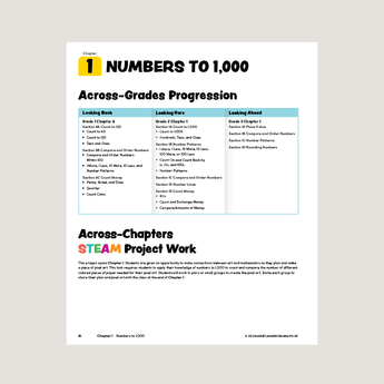 The Teacher’s Guide provides teaching ideas and strategies to facilitate exploration, classroom discussion, and student-centered learning. It also includes ideas for differentiation, ideas for small group learning, and answers with select worked solutions. The front matter provides background on the program structure, lesson and concept development, and an overview of the Readiness-Engagement-Mastery model of learning.